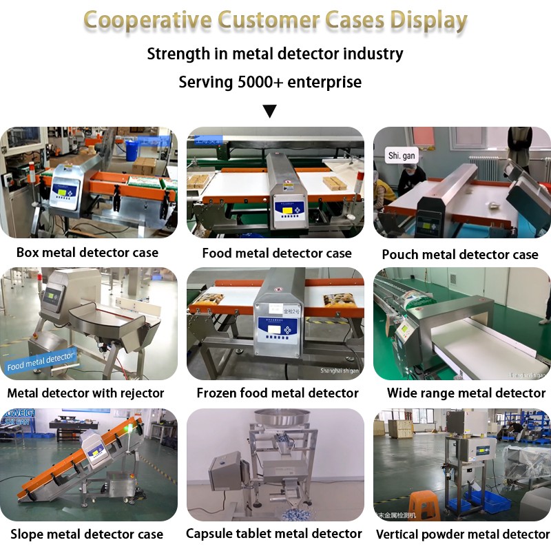 Automatic metal detector for powders granules particles is suitable for loose, non-sticky granular and powder products with a certain degree of flowability, such as pharmaceutical pellets, monosodium glutamate, white sugar, coffee beans, oatmeal, tablets, candy, solids, sticks, large solids, and irregular products.